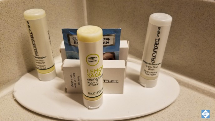 Toiletries were by Paul Mitchell, the standard brand for limited-service Marriott properties.