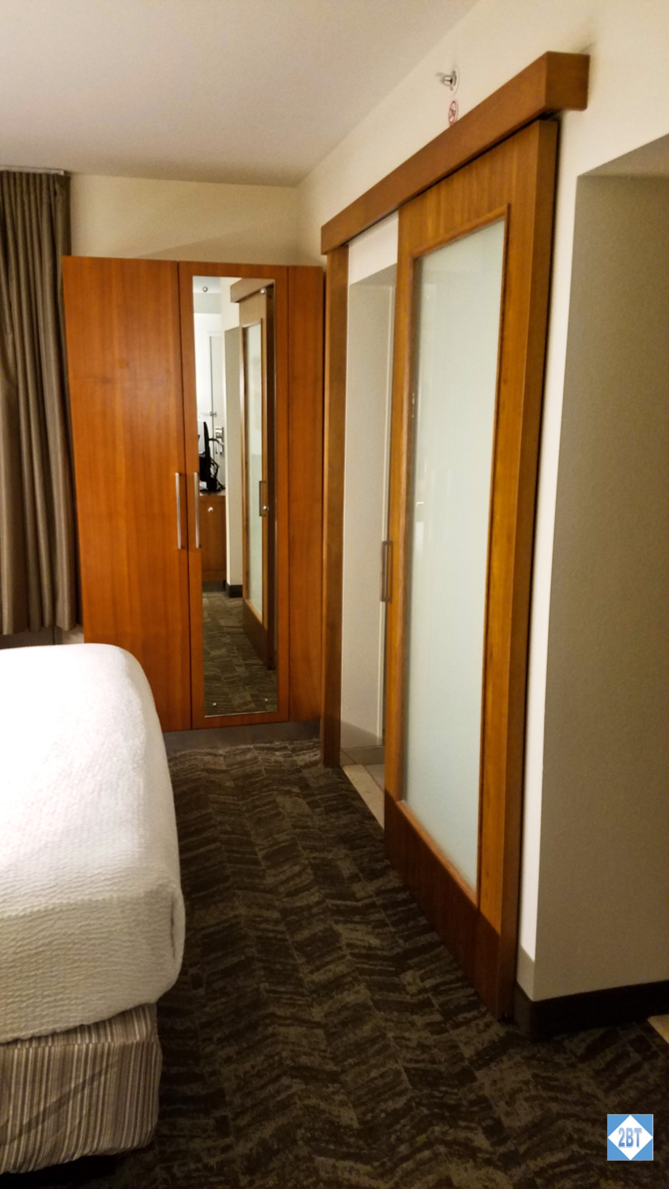 SpringHill Suites SLC Airport Wardrobe (each of the two doors on the right led to part of the bathroom)