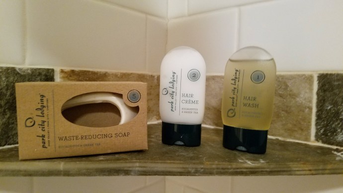The toiletries themselves were made specifically for Park City Lodging, a group that manages a number of rental properties in the area. I liked the citrusy scent of the shampoo and conditioner. I thought the idea of a bar of soap with the middle cut out was brilliant as we didn’t even come close to using up the soap that was provided much less an entire bar. I hope they are recycling what is left over. If not, then I think a bottle of body wash would be a better idea as we could take that with us. A hair dryer was provided but if you have thick or long hair you may want to bring your own as it was not very powerful.