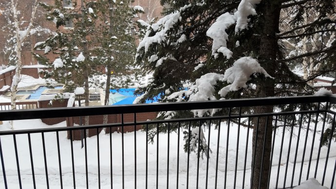 Each condo in this complex is independently owned so they each have unique decorations though the general furnishings and layouts are mostly the same. There are two buildings and the 100-series rooms are in the building closest to Park Avenue while the 200-series rooms are on the building on the Deer Valley Drive side. The pool and outdoor hot tubs are located between the two buildings. Park City had over 250 inches of snow before our arrival but the maintenance crew did a good job of keeping the paths between the buildings and the hot tubs shoveled. There are also stairs from that central area that lead up to the base of Main Street and that was kept cleared as well, so good job to the crew for that.