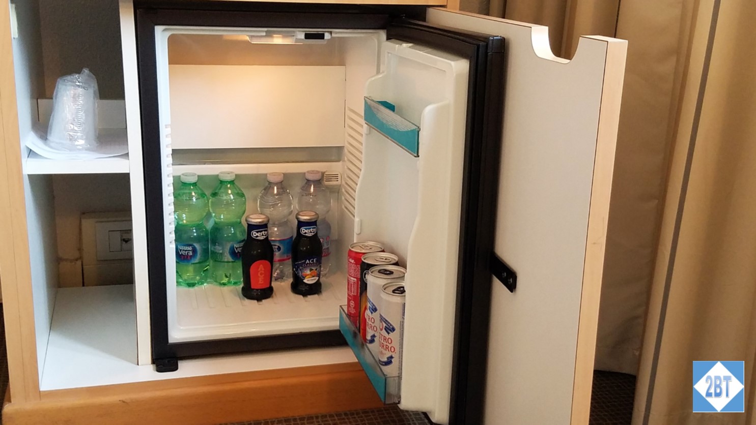 The room had the standard hotel room layout with a bathroom on one side and a wardrobe on the other. In this case there were two wardrobes: one with shelves and the safe and the other with room to hang clothes.