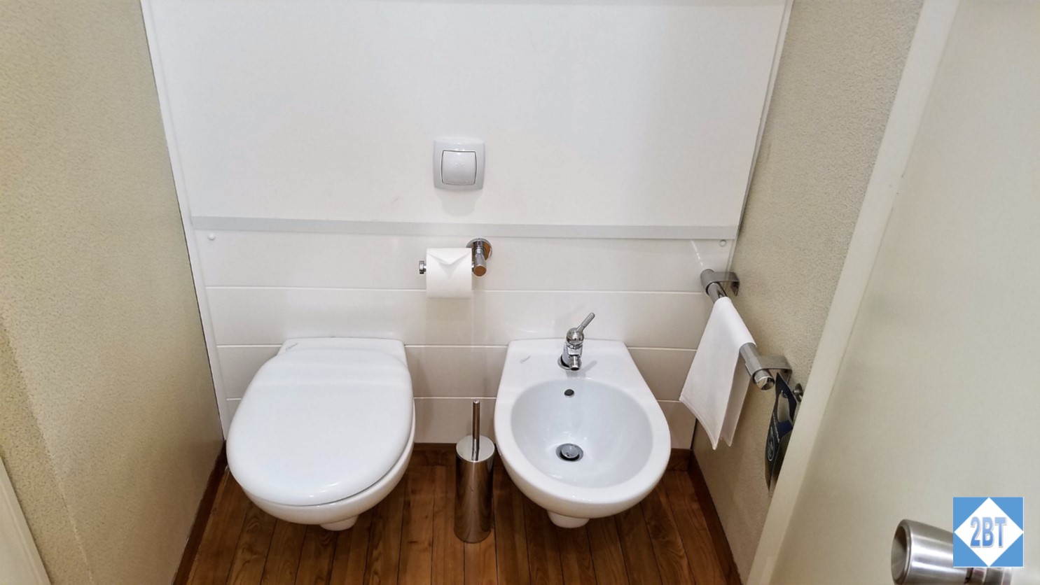 On the right side of the bathroom, behind the door, was the toilet and what I suppose is a urinal.
