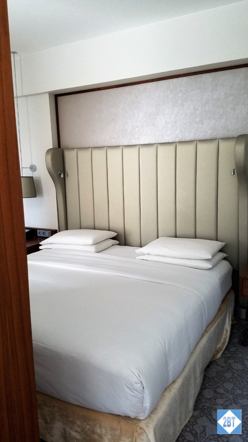 The bed was king-sized and very comfortable. Each side had two electrical outlets, so kudos for that!
