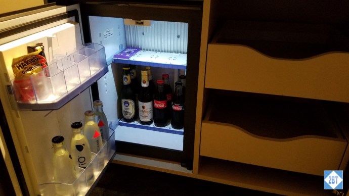 Inside the cabinet was the mini-bar and a couple of drawers.