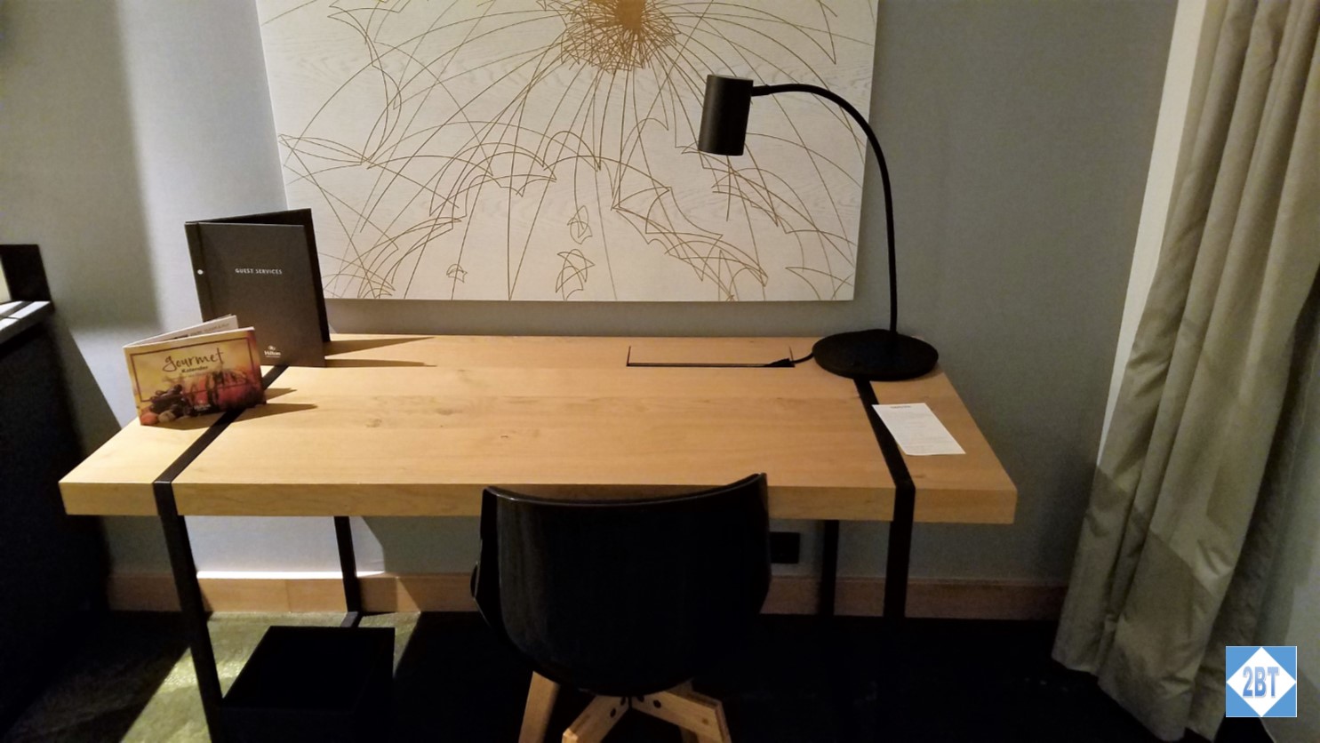 Opposite the beds, by the window, was the desk. I didn’t try out the chair but I liked the compartment with a number of accessible outlets.