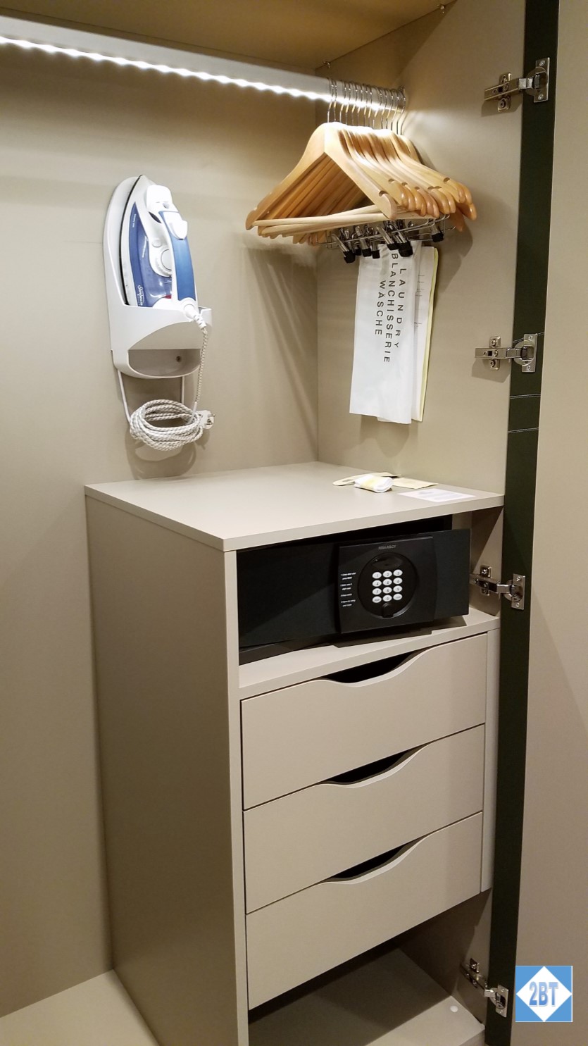The wardrobe looks rather large from the outside but when you open it up you’ll see that half the space is taken by a set of drawers and the safe. Don’t get me wrong, those things are needed but if you’ve got two people staying here for any length of time and they need to hang items, they might find themselves with less space than they hoped.