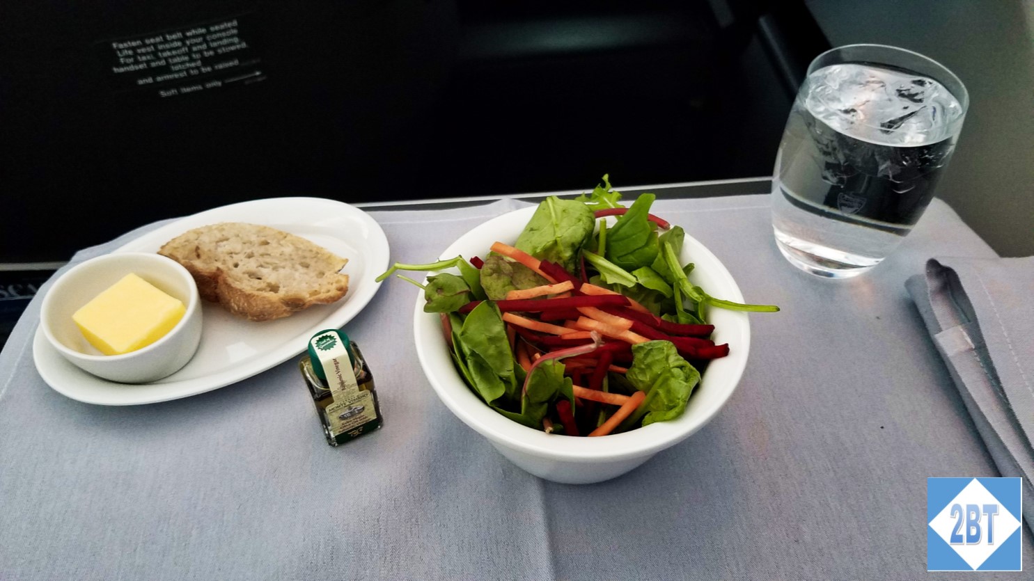 As on the outbound flight, the meal was served from a cart directly to my tray table. For the started I selected the salad with oil and balsamic dressing.