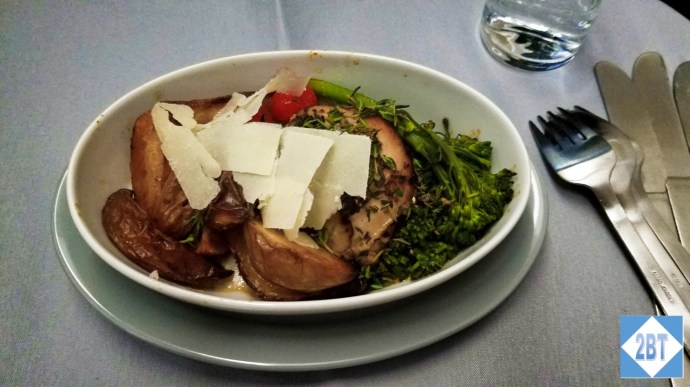 I didn’t take photos as it was starting to fill up in advance of the longhaul flights but like its Newark counterpart, it had the light wood and simple forms associated with Danish Modern design. There was a children’s play area near the front door and I wish a certain child in the lounge had been introduced to it so she wouldn’t have been zooming around the lounge looking for her parents. (But I digress.) In retrospect I could have skipped the buffet at the hotel and saved my company a few bucks because there was a decent enough spread here that certainly would have seen me through until lunch on the flight.