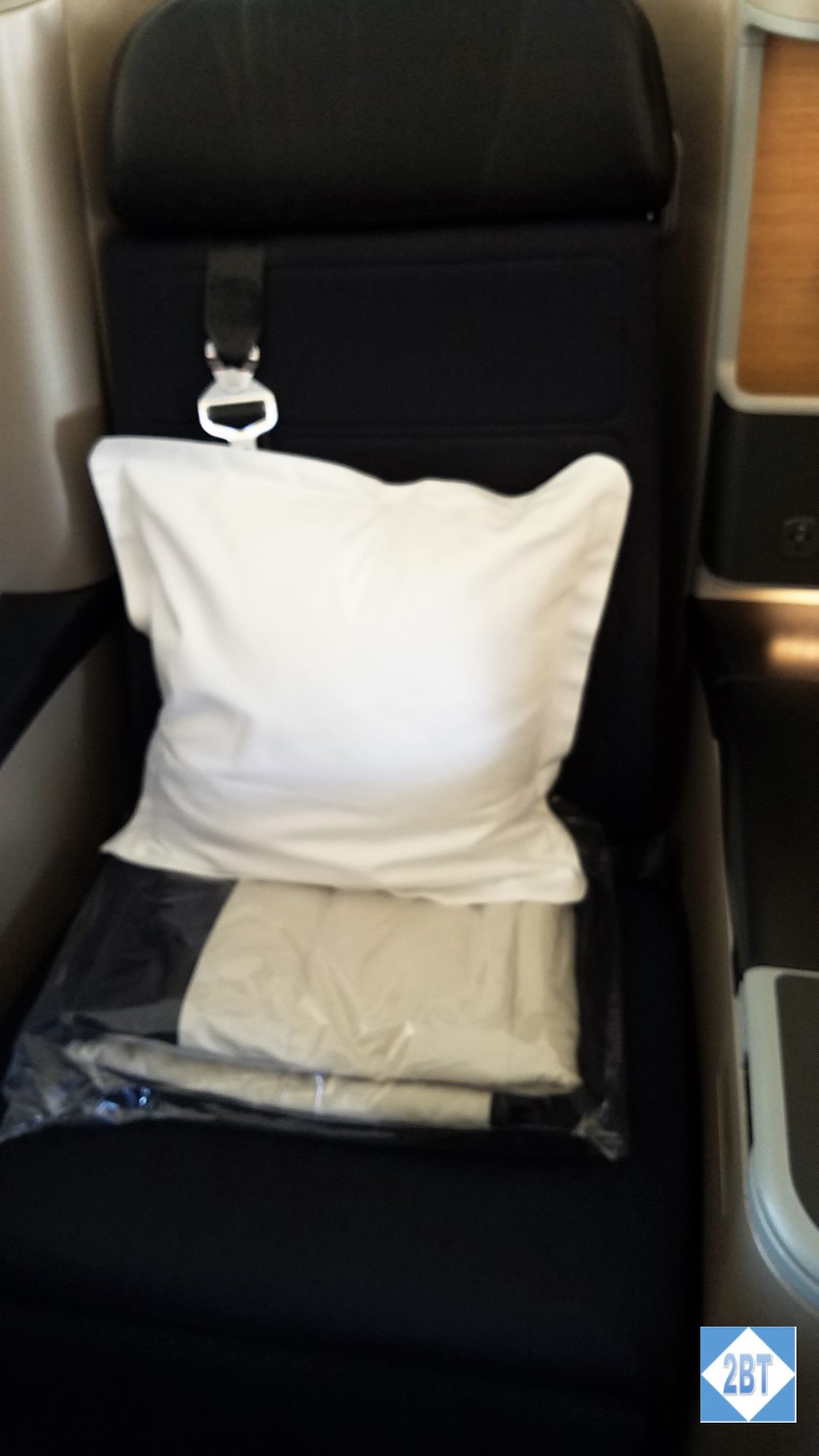 Waiting for me at my seat was a pillow and a blanket.