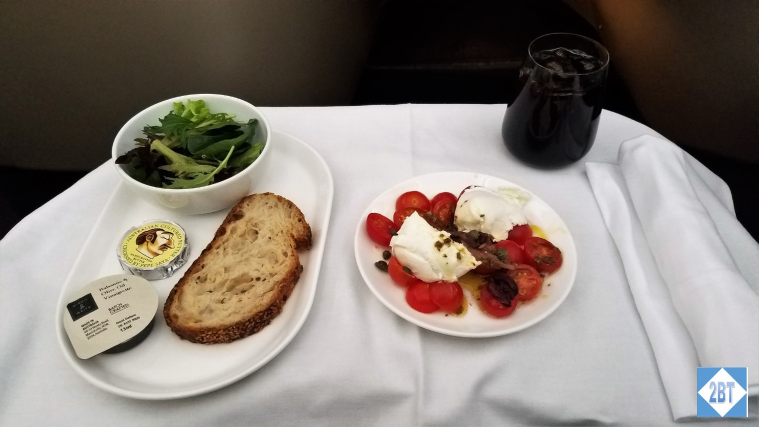 Our cabin was mostly, but not completely full. The staff was good and there were no issues on this relatively short flight. When we returned to Australia toward the end of our trip I considered buying a business class ticket though I ultimately decided against it because that particular flight only had recliner seats.