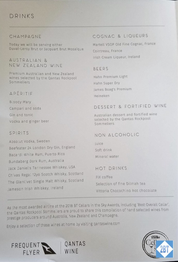 We were offered our choice of pre-departure beverage: champagne, still water or sparkling water. As I didn’t select it, I’m not sure if the champagne was the Duval-Leroy Brut or the Jacquart Brut Mosaique.