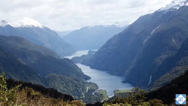 The bus stopped on the Wilmot Pass for this view down into Doubtful Sound