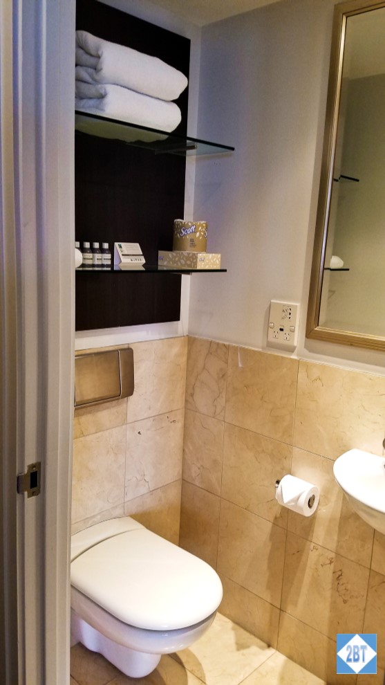 Second bath toilet and shelves