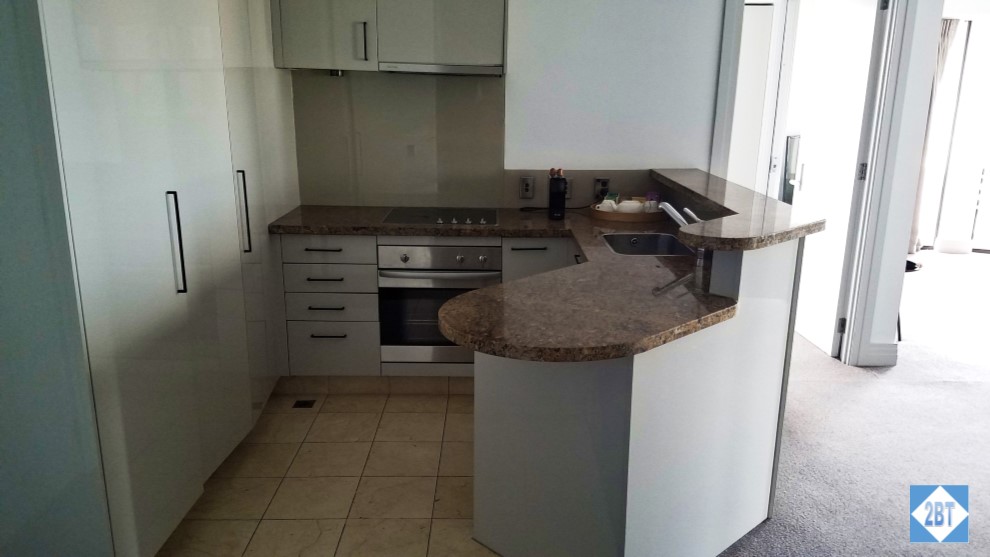 Kitchen layout. The refrigerator and pantry were on the left wall.
