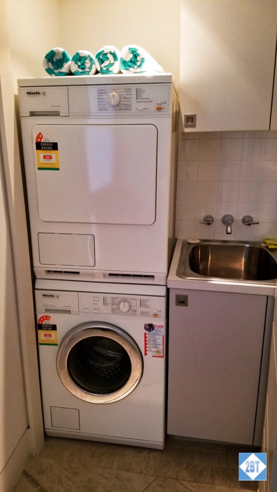 By the front door was the utility closet with the stackable washer and dryer along with a deep utility sink. Four beach towels were provided, which was nice!