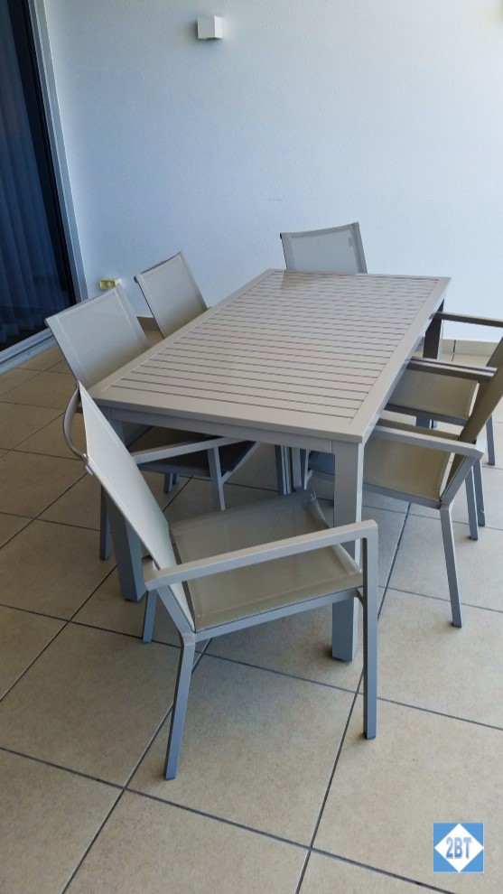 The glass dining table could seat six in comfortable chairs though we had breakfast on the balcony since we had such great weather.