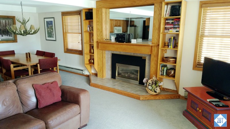 Dining Table, Fireplace and TV