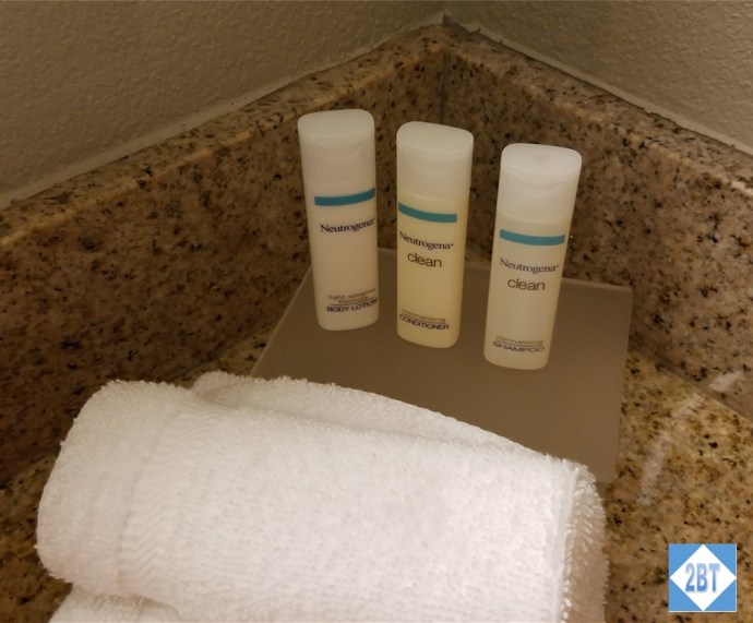 Toiletries were by Neutrogena and I wasn’t crazy about their perfume-y smell. I ended up buying my own full-sized toiletries since I’d need them eventually anyway.