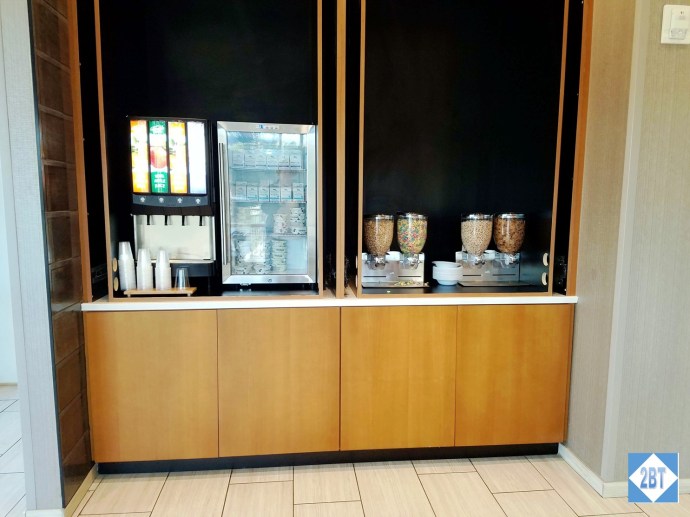 Turn right past the end of the bar to reach the area for the breakfast buffet. I didn’t get any photos of the buffet with food as it was far too busy during my stay. There were several hot dishes like eggs, sausages and bacon as well as the standard cereals, breads and pastries. Multiple types of juice were available and the coffee station had a few types as well.