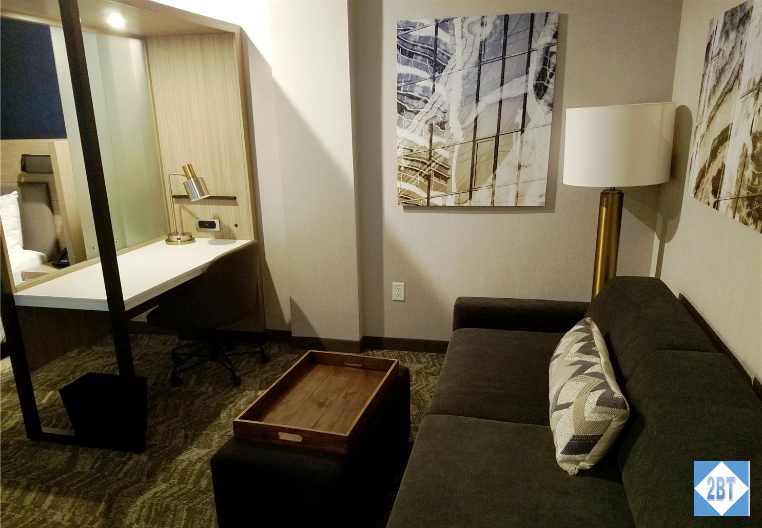 The room was much the same as the SpringHill Suites in SLC where I stayed a few years ago. The room opened into the living area with a sofa and a desk which acted as a partition from the bed. The bathroom was off to one side.