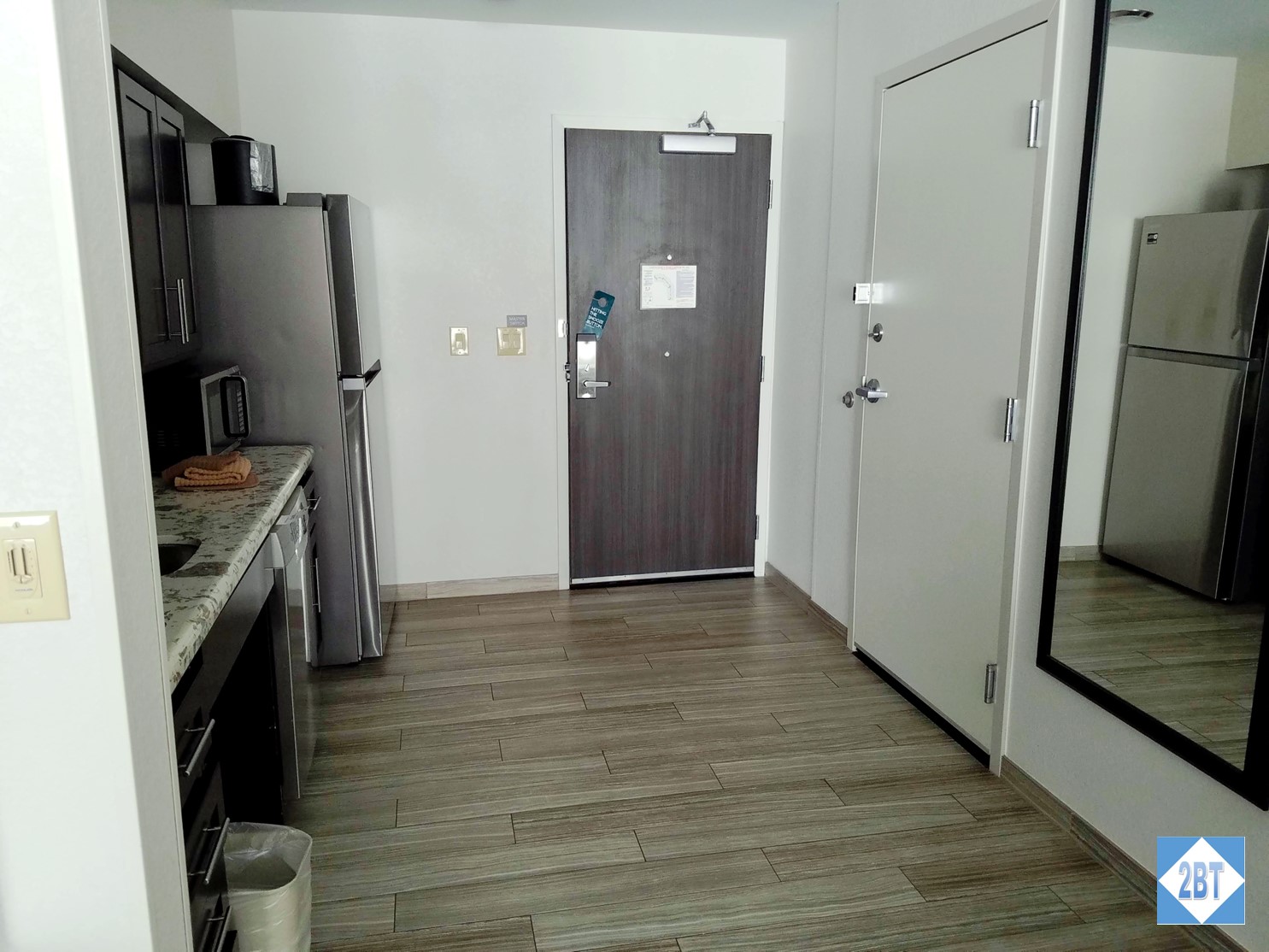Since I stayed at this property just two years ago, this review will be brief. I’ll only highlight the differences in the room. During my previous stay I was in a King Bed One Bedroom Suite but on this trip I had stayed in a King Accessible Tub Studio Suite, normally meant for those who need accessible amenities. Since I’d already reviewed this property, I’d planned to stay at the Hampton Inn in downtown Steamboat. But on Thanksgiving weekend I received an email stating that the hotel would be closing permanently as of December 1 (I think that was the date). As the email did not come from someone with a hilton.com or hamptoninn.com email address I was a bit skeptical but decided I should go ahead and move my reservation since there are very few properties in Steamboat that are available on points or by using a free night certificate (which I did). Thank goodness I swapped reservations quickly as I got one of the last available rooms and that’s why I ended up with an accessible room. I later learned the Hampton and a Fairfield Inn were being converted to employee housing.