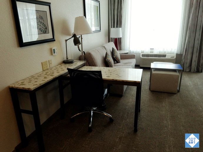 The sleeper sofa was only the width of a double bed so not long enough to stretch out on. The coffee table and ottoman had the familiar combination seen in other Homewood Suites properties.