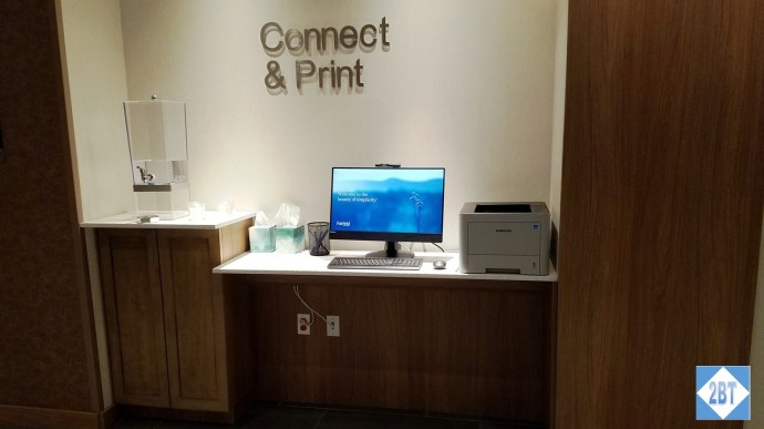 There is a computer and printer available for guests. It’s located on the ground floor near the elevators and across from the pool.