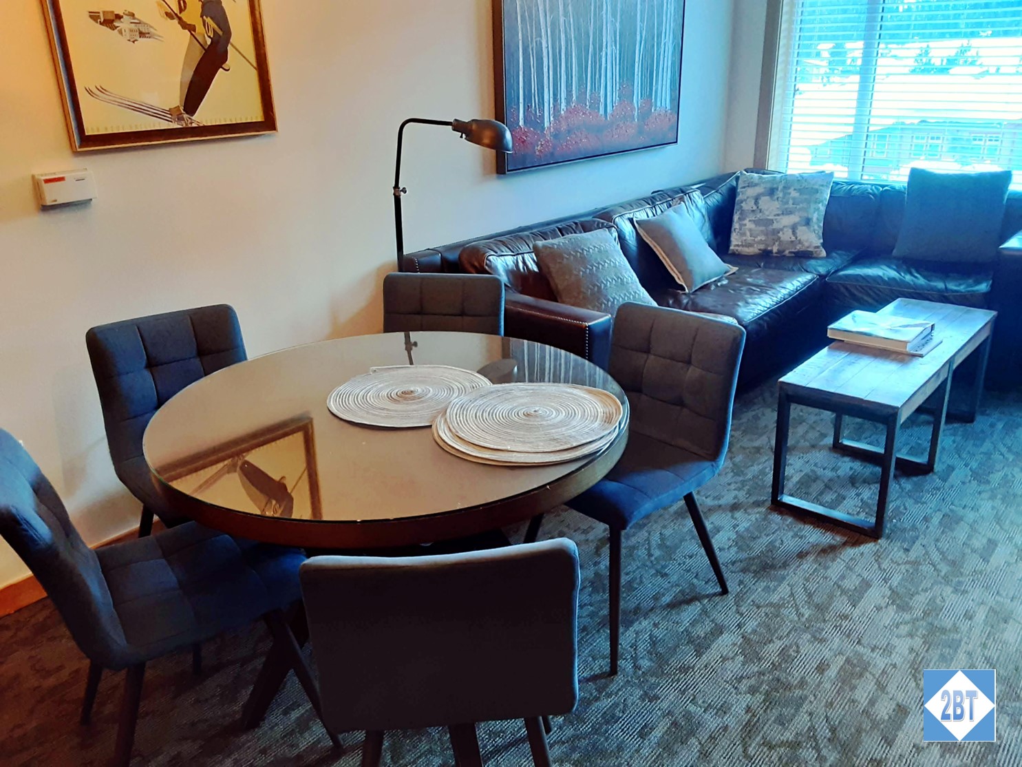 As there were three groups arriving that same day, the weekend manager was handling our check-in within one of the conference rooms. Unfortunately my room was not ready. The manager considered swapping us to a different room but when she learned there were three of us in the unit who would not be skiing, she said we’d be better off in the room we’d been assigned as it had a good view we could enjoy. That turned out to be a more important statement than I realized at the time. I was happy to learn we could have housekeeping every day. That was rare even pre-pandemic and is practically unheard of these days.