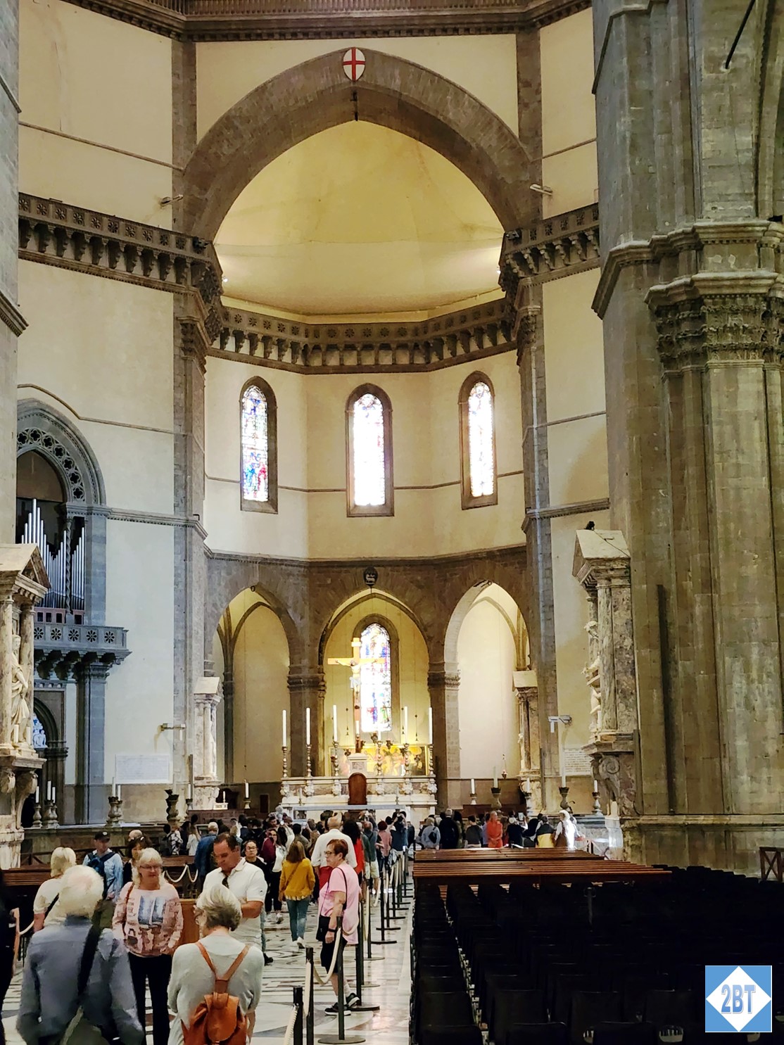 The Cathedral of Saint Mary of the Flower, better known as the Duomo (Dome), is a character in its own right in the city. It’s a navigation point as the dome, the largest brick dome in the world, is visible from much of the area. We took photos at various times but shortly after our visit to the Accademia decided to stand in the free line to go inside. By the time we joined the line it already spilled along the side of the church and this was before it opened! However, once the doors opened it moved rather quickly. The exit is on the side of the building so at least you don’t have folks going in and out the same doors.
