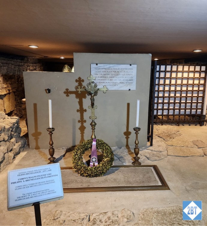 The lower floor features the catacombs (a separate ticket, which we did not buy), the gift shop and this one rather simple grave that was afforded a highly favorable location. It is the grave of Filippo Brunelleschi, who finally figured out a way to make the dome work, likely considered his crowning achievement.