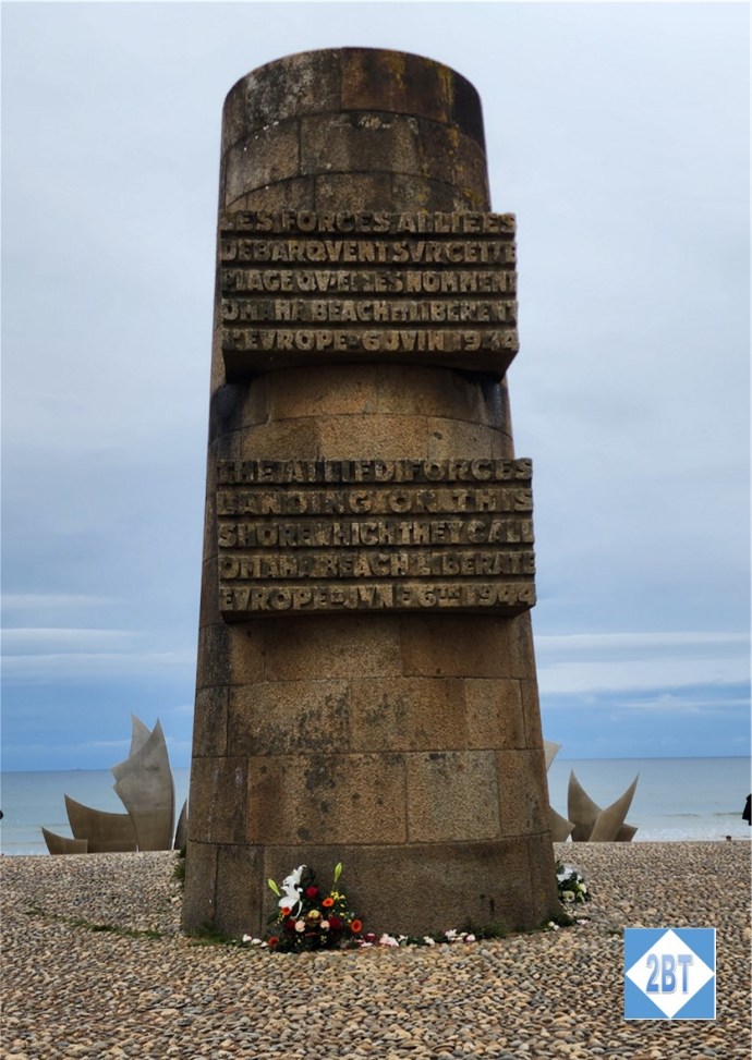 Our bus then drove to the coast and parked along Omaha Beach. We stopped at the Omaha Beach Memorial which reads “The Allied forces landing on this beach which they call Omaha Beach Liberate Europe June 6th 1944”. This memorial is on the parking lot level in a paved area.