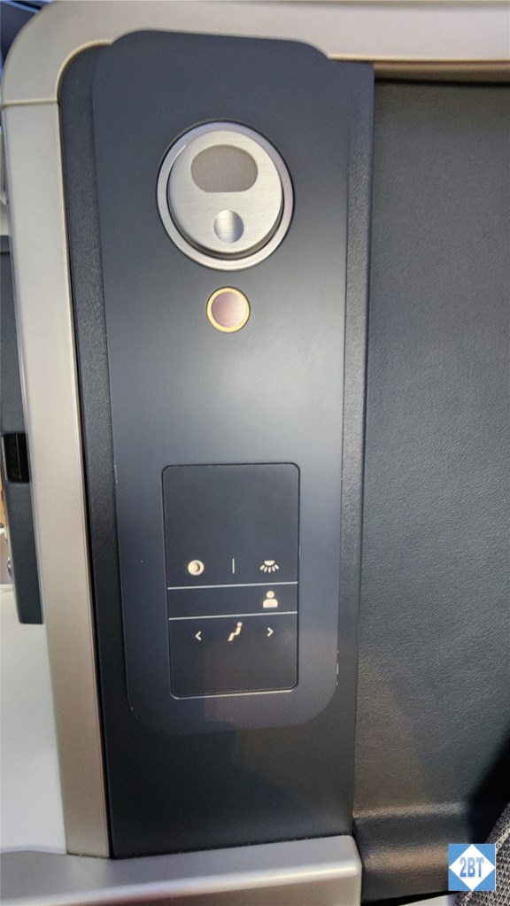 There were buttons over the window to dim it instead of a physical window shade. I was not a fan as it didn’t get very dark at all. Fortunately I didn’t need to sleep deeply on this flight because there was no amenity kit and thus no eyeshade.