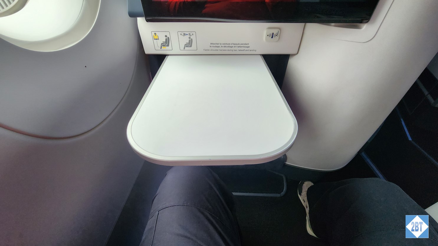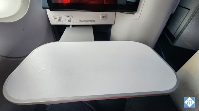 I liked how the tray popped out from under the IFE screen and then turned sideways.