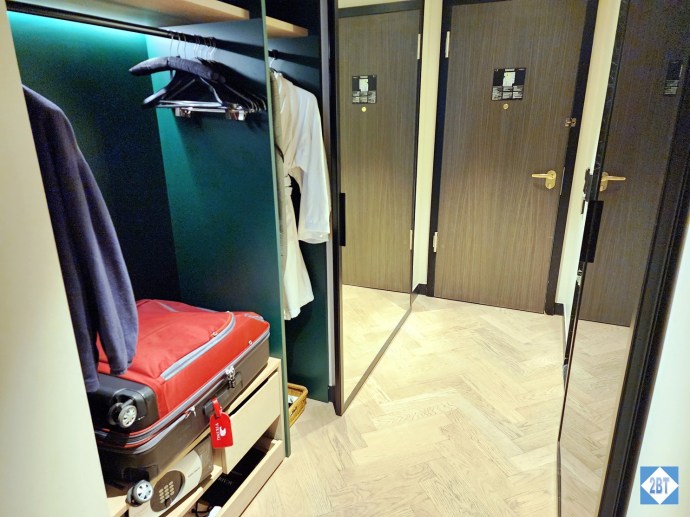 Our room had the standard layout with an entry hall and the bathroom on one side and the closet on the other before opening up into the main room with the beds.