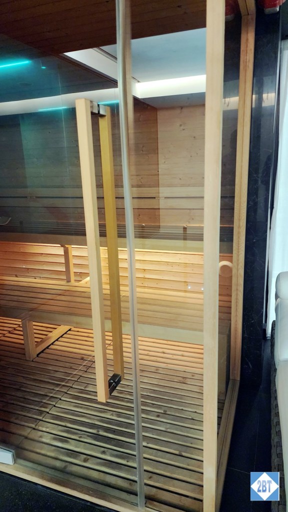 On level -1 you’ll find the spa (which we did not investigate), a small lap pool (which had classic films projected on the wall above the pool!), a sauna in the pool area and a very small gym.
