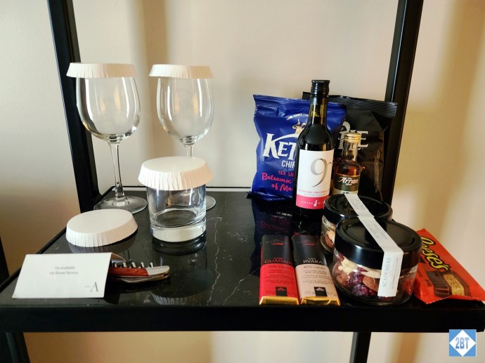 We had a welcome amenity of a bottle of water and a sesame bar.