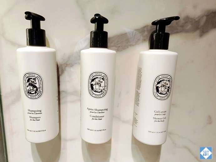Toiletries were wall-mounted and were by Diptyque. I don’t believe I’d ever used this brand but I quite liked them.