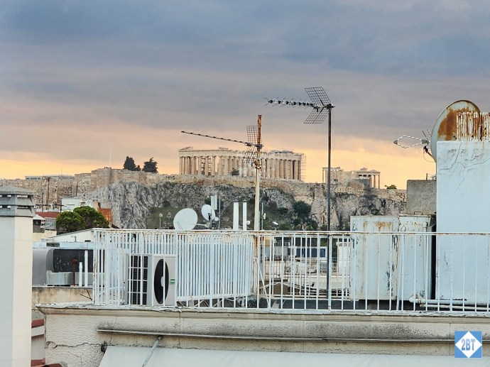 This is a boutique hotel with only 60 rooms. When using points for rooms with two beds, only the basic Deluxe Guest Room is available, so that’s what we booked. However when we received our room key there was a note in the card key-holder noting that we had been upgraded. While it wasn’t a suite, we’d been upgraded to an Acropolis-view room on the 7th floor.