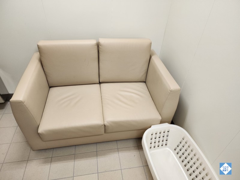 At one end is this sofa and there’s a wall-mounted TV too. Laundry rooms on other decks had different layouts but the same facilities.