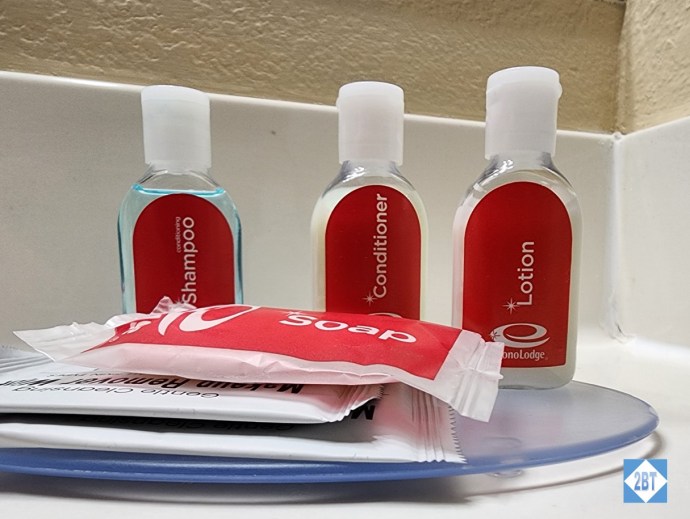 Toiletries were made for EconoLodge and carry their brand. They were nothing special but got the job done which is really all I need.