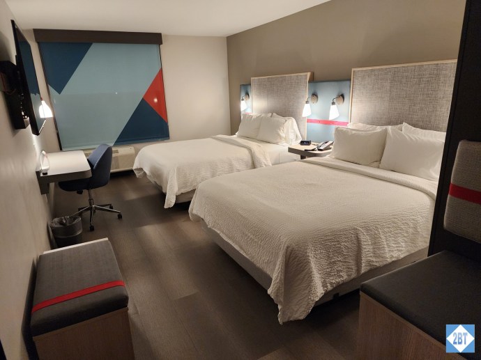 Once I got my bags I called the hotel for the shuttle before I even left the building. I was told it would arrive “shortly”. I dragged my two giant bags out to the proper island and waited. And waited. When the shuttle finally arrived the gentleman driving did a good job of getting my two bags loaded. It had taken so long for the shuttle to arrive that I thought he must have been picking up other folks but the shuttle was empty. Let’s just say he was a very cautious driver. We then had to go to the other side of the airport and pick up several other parties. This shuttle services several hotels that are adjacent to one another and, naturally, the other parties got dropped off first. This was probably easier since my bags would have been at the back/bottom of the pile of luggage. The hotel is 5.6 miles from the airport, per Google Maps, and the drive should take about 10 minutes.