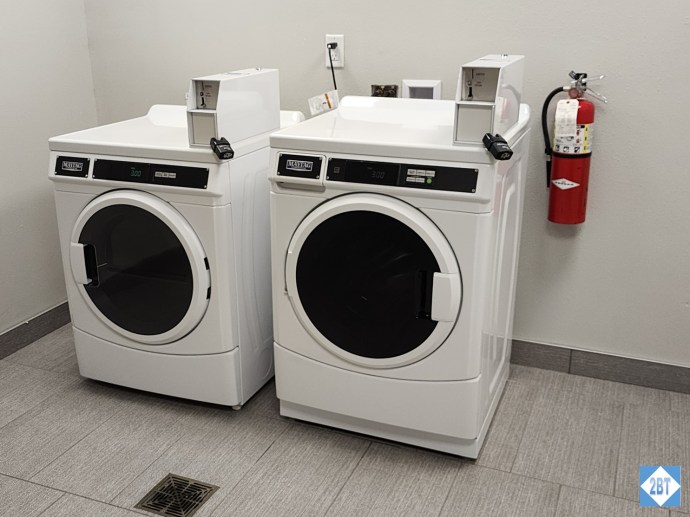 There is a washer-dryer set on this floor as well. If you need laundry supplies, they can be purchased at the Market. Each unit cost $3 per load.
