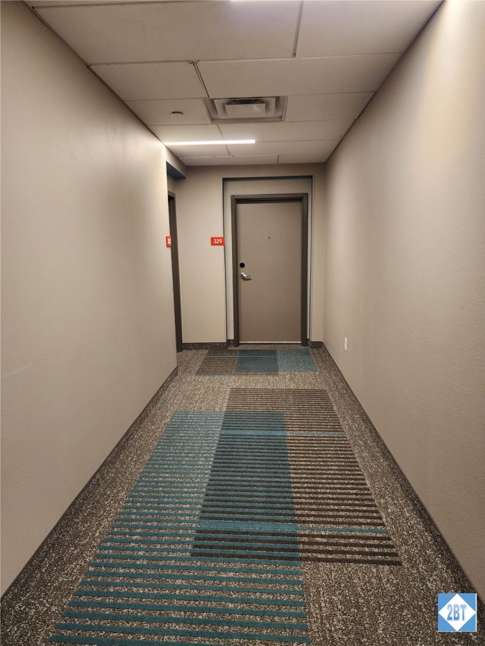 Our room was on the third floor. Leaving the elevator lobby we turned left down this long hall (the red sign denotes the elevator lobby).