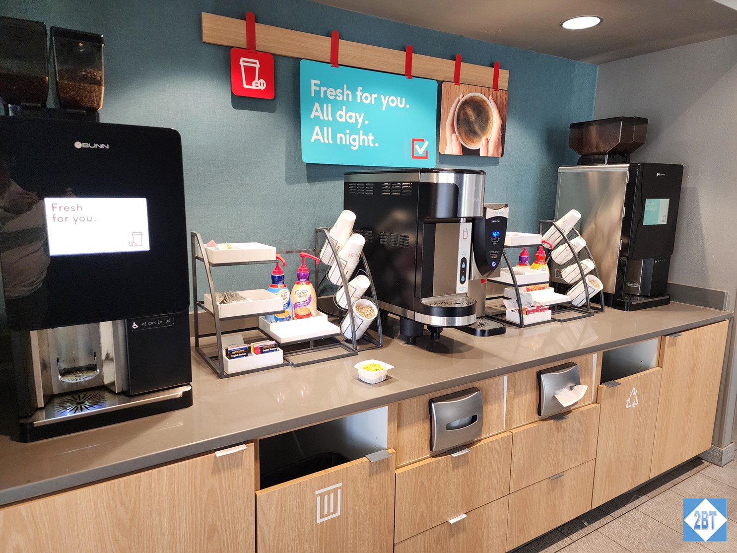 Rightmost was a large station for all kinds of hot beverages. As I don’t drink coffee I don’t even know what all some of these machines do! I was able to get hot water and a tea bag, which suited me perfectly.