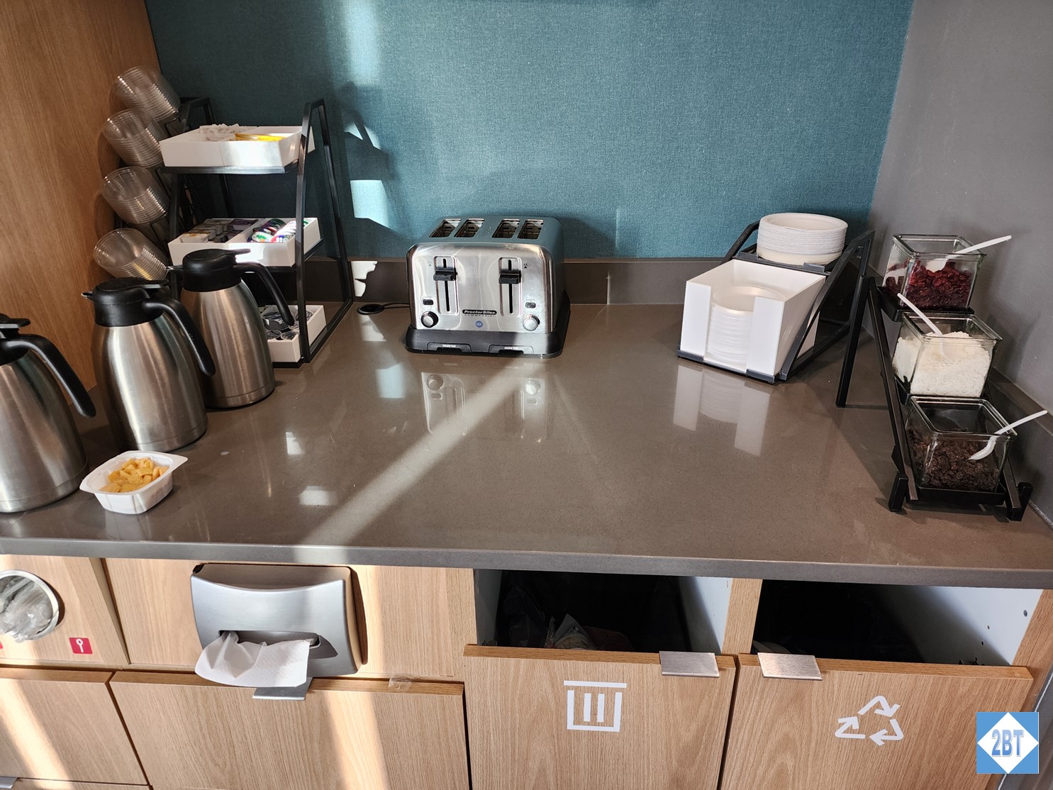 Next was a station with a toaster and toppings for your cereal or oatmeal, along with several choices of milk.