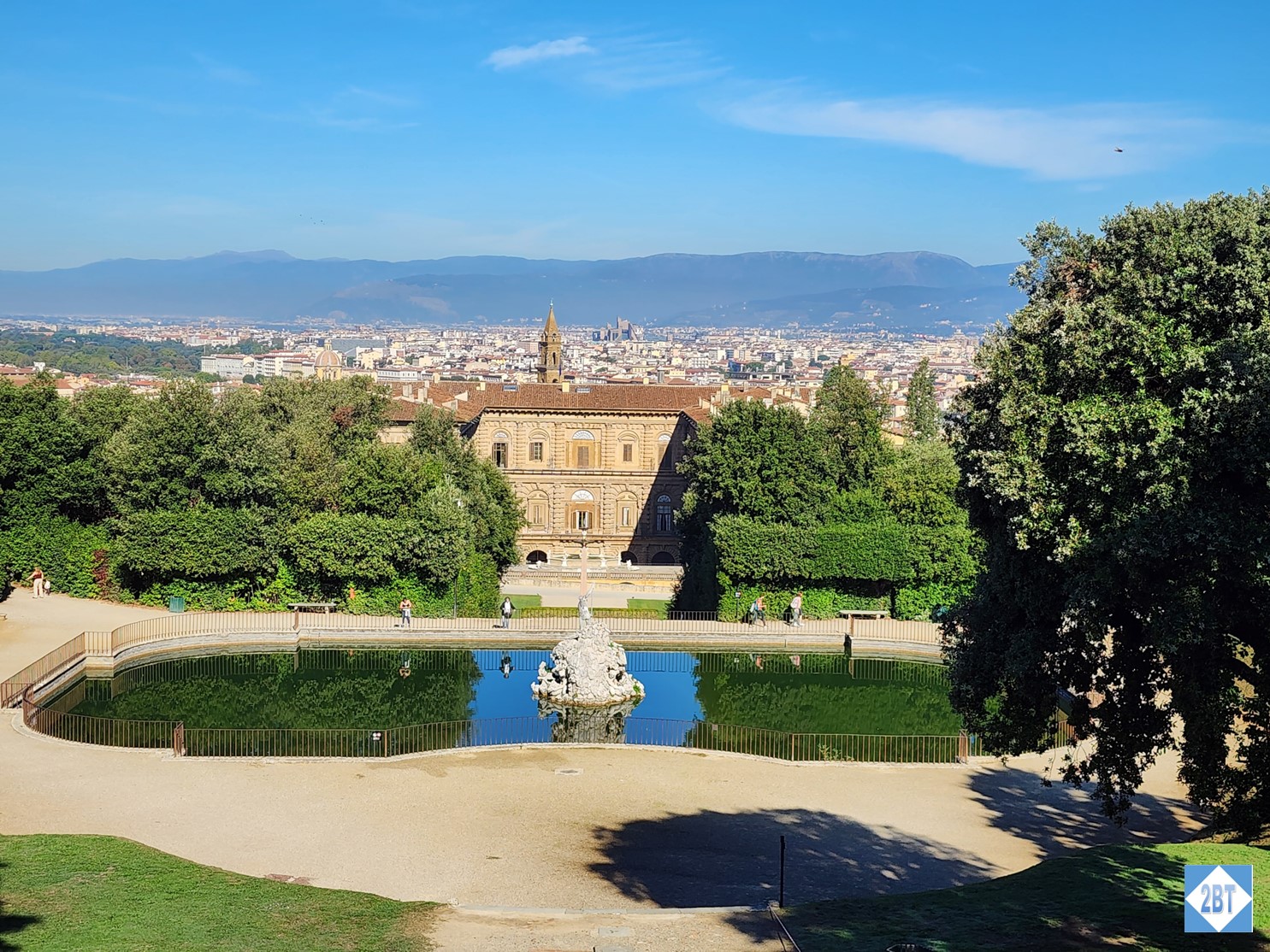 The back of the Pitti Palace overlooking Florence, Italy as seen from the Boboli Gardens
