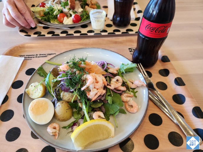 For lunch we ate at the cafeteria attached to the Ikea Museum, which is just across the parking lot. The museum is free for hotel guests although when we arrived there was no one at the front counter so we just walked on in. There are several pre-made choices available. I went with the shrimp salad.