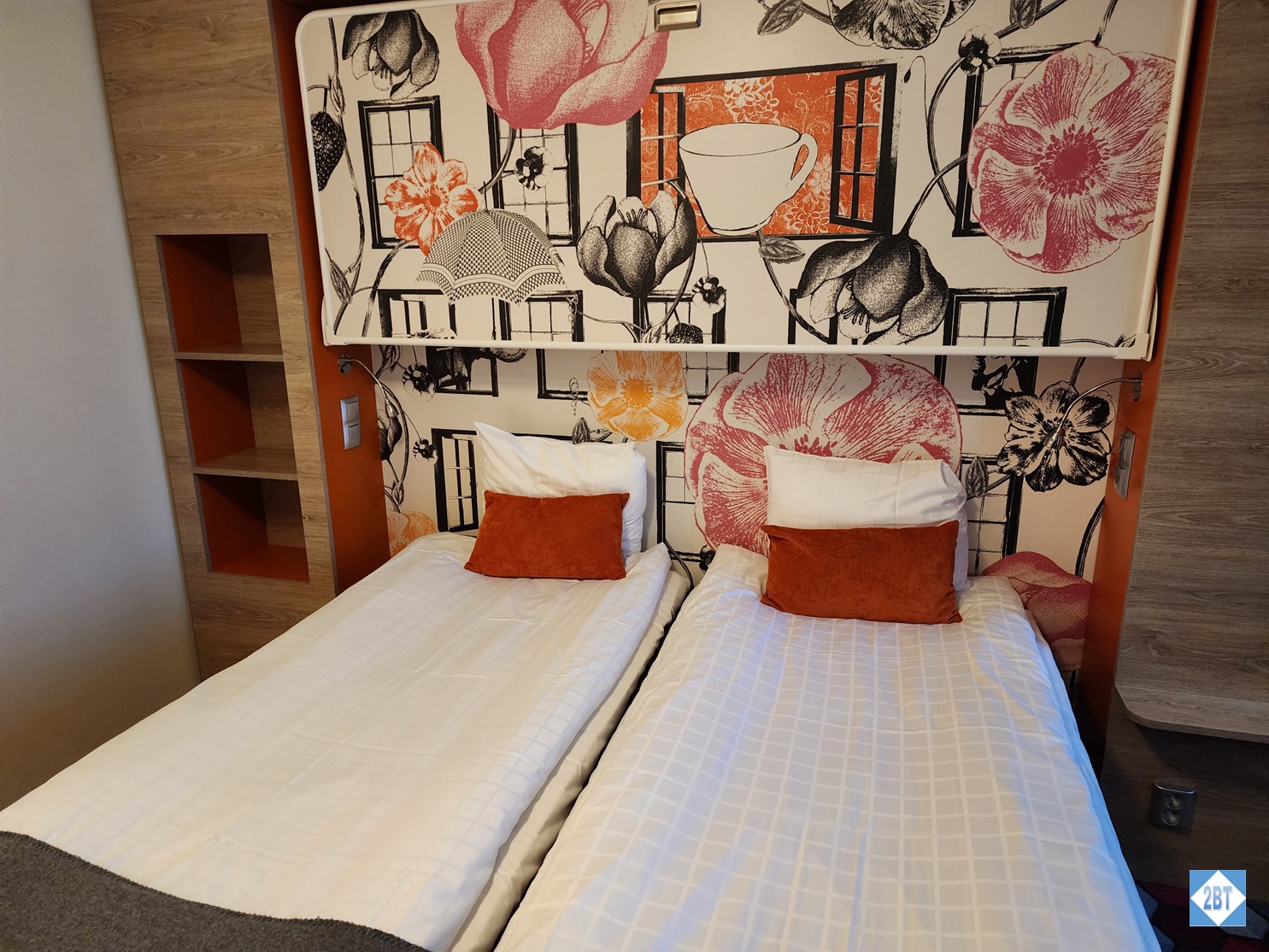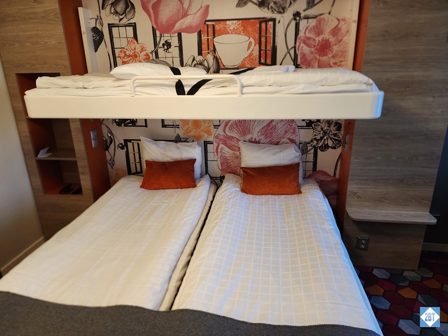 As you can see on the photo below, over the (super-soft) twin beds is a pull-down, Pullman-style bed that can be used for a third person. Had our German friend decided not to join us for this part of the trip this was one of the candidates for the three of us to stay together. I’m pleased that we were able to go with four people in two rooms instead.