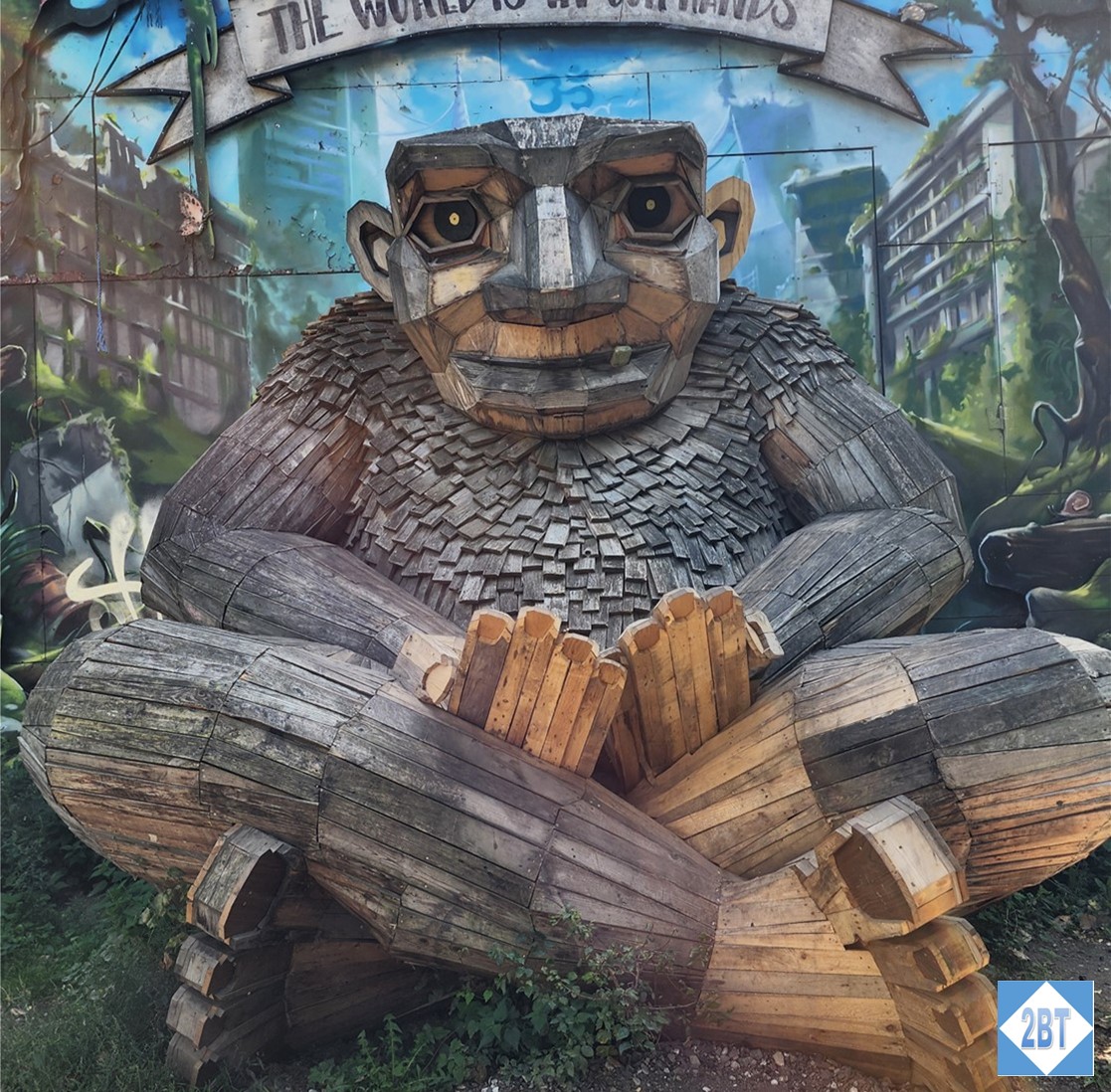 Green George, one of the Thomas Dambo trolls, located in Free Christiania within Copenhagen, Denmark