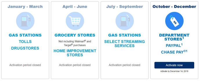 It’s the 15th of the 3rd month of the quarter so it’s time to activate bonus categories for card that have quarterly bonuses for next quarter. All of these cards offer bonus points or cash back on up to $2000 in purchases during the quarter.